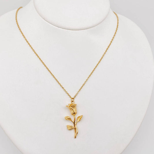 18K Gold Plated Stainless Steel Rose Pendant Necklace - FGS
