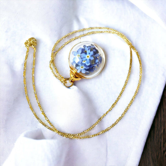Elegant forget-me-not flower ball necklace - 50cm gold-plated 925 sterling silver chain