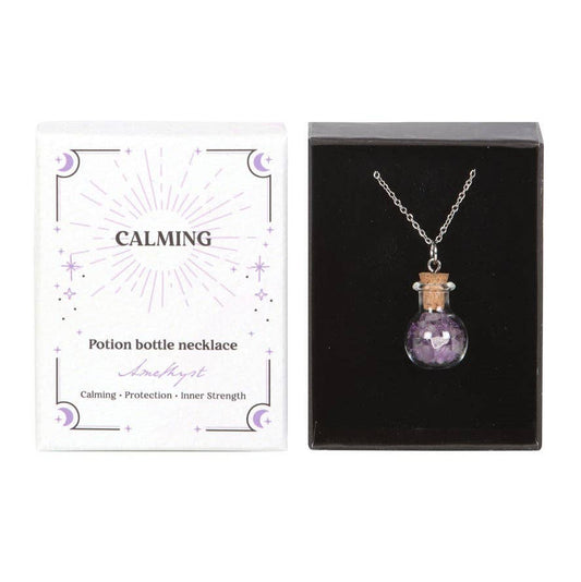 Calming Amethyst Crystal Chip Potion Bottle Necklace