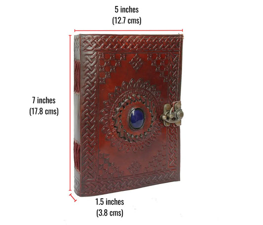 Leather Notebook with Stone Mandala Embossed Travel Journal