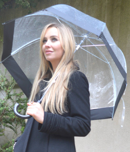 Everyday Walking Stick Style Clear Dome Umbrella with White: White