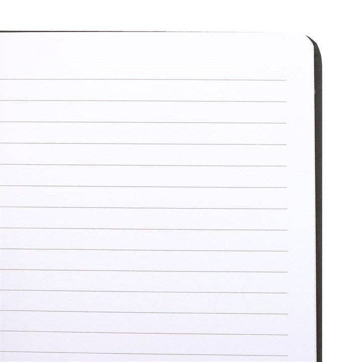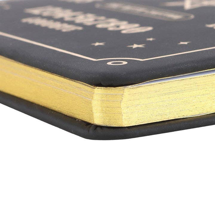 Whether used for notes, lists, or journaling, this beautiful A5 notebook will elevate your desktop with a mystical talking board design in a premium black and gold finish. This notebook is accented by gold foil pages and a gold ribbon marker. Includes 100 sheets / 200 lined pages. Designed by Something Different Wholesale and part of the Summon the Spirits range of spirit board-inspired home decor and gifts.