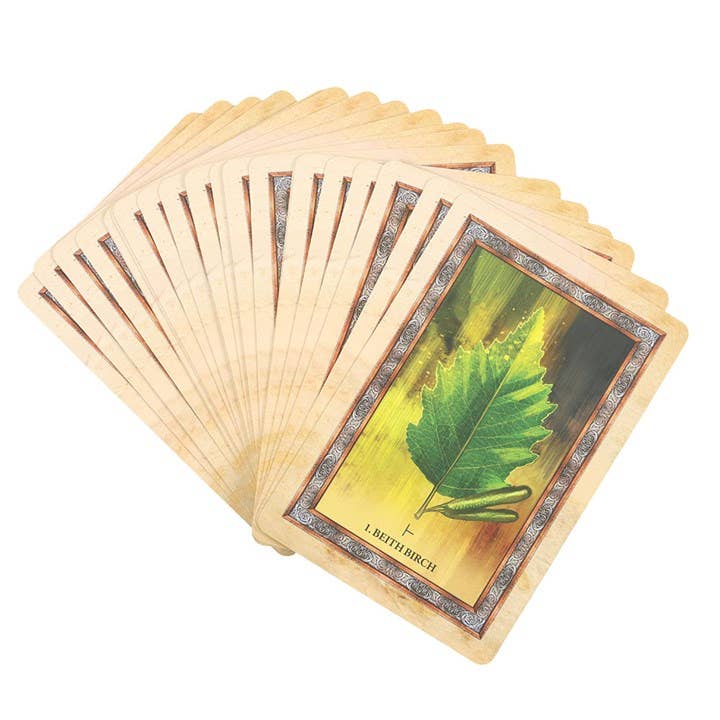 A divination deck based on traditional celtic tree mythology! Celtic Tree Oracle is based on ancient Celtic wisdom, which revered trees as living, spiritual beings keepers of sacred knowledge that can help us survive and thrive on Earth. This deck is your tool to tune into the trees and access their age-old loving guidance. You will become familiar with the signature energies of the trees and more connected with nature inspired to walk through the woodlands and breathe in the revitalising air of the rainforests. These cards are steeped in Celtic cosmology which honours the cycles of the seasons and teaches reverence for all living creatures and respect for our Mother Earth. May they help to connect you to the wisdom of the beautiful, sacred world of trees. Includes 25 cards and 116-page guidebook.