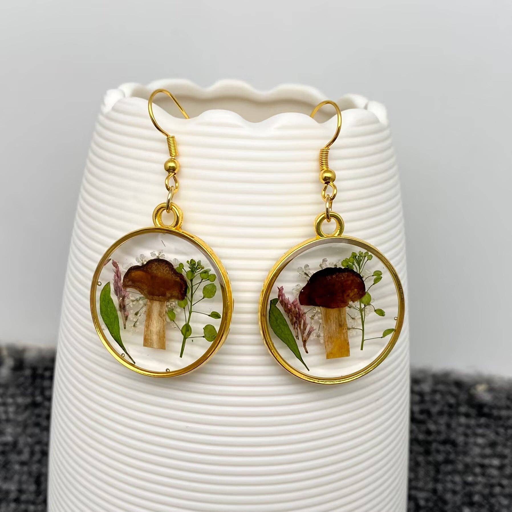 Dried Flowers & Mushroom Round Dangle Earrings - PDF