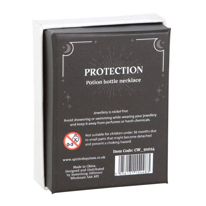 Give the gift of crystal magic with this miniature potion bottle necklace. With natural black obsidian chips and a cork stopper, this necklace serves as a spellbinding accessory while repelling negative energies and promoting stability. Presented in a matching gift box and perfect for that special witch in your life. Plastic bottle on a nickel-free stainless steel chain. Designed by Something Different and part of the Crystal Witch collection of cute, witchy gifts.