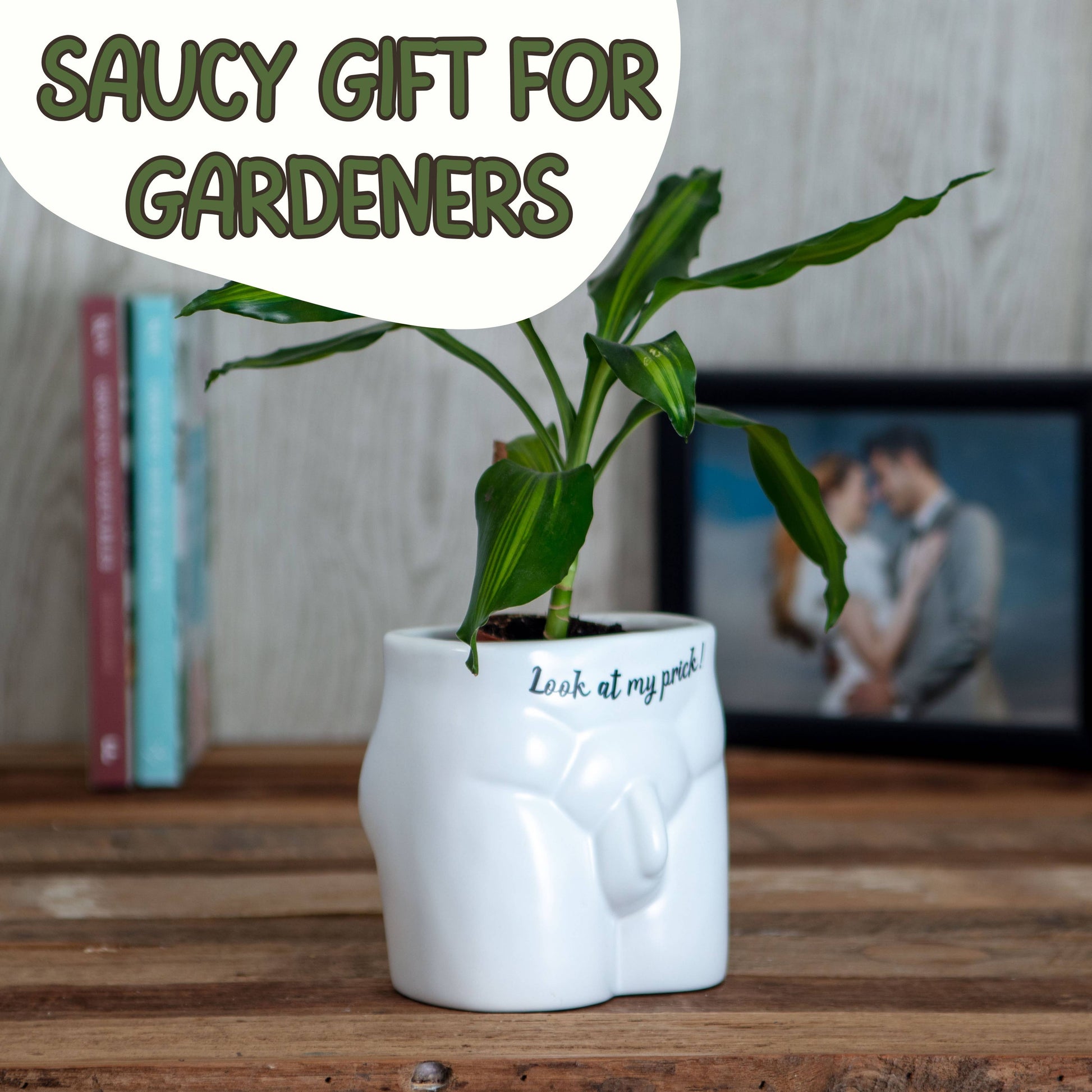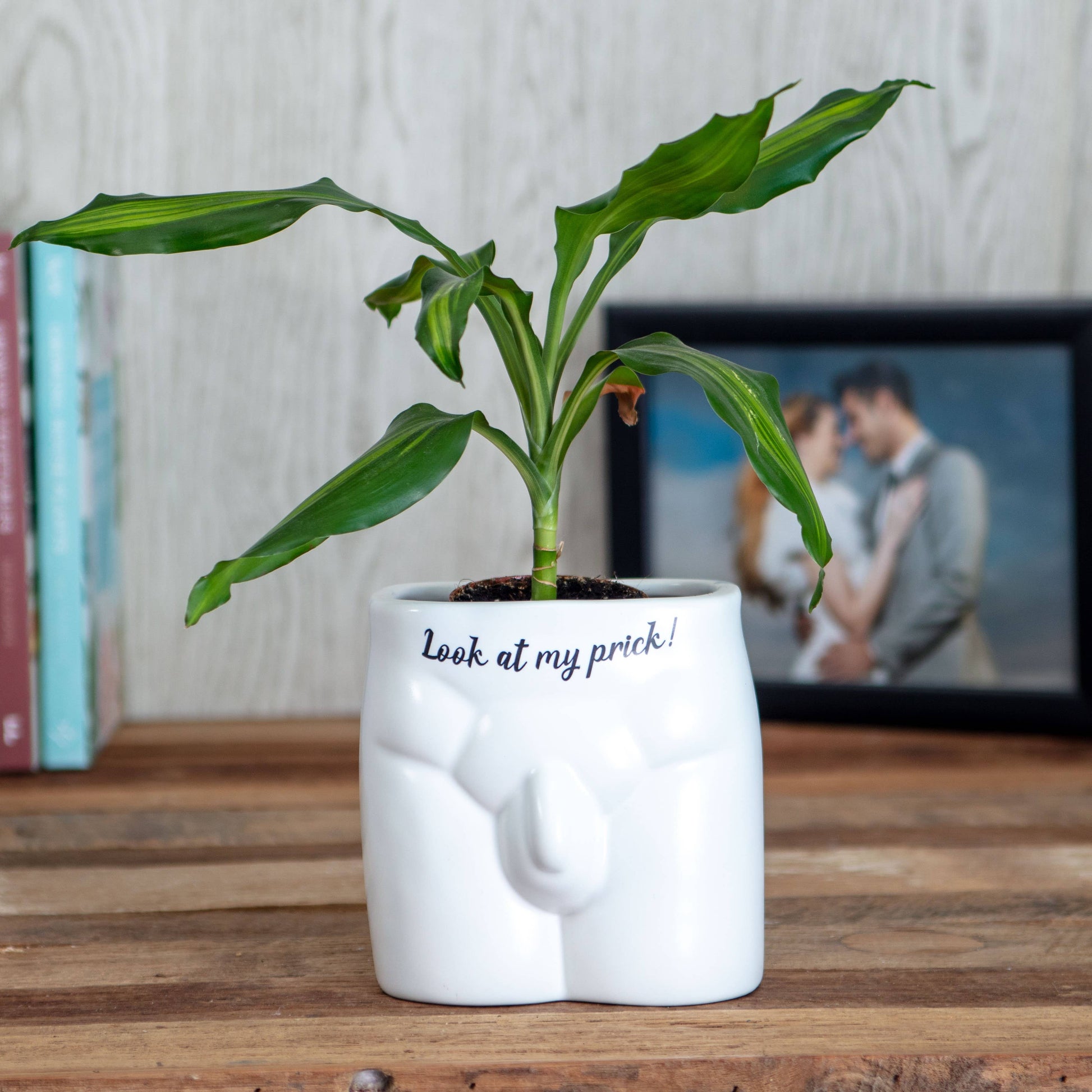 Feeling thorny? Got a friend with a saucy succulent? Part of our hilarious 'put some plants on!' plant pot range, this cheeky pot is the perfect novelty gift for friends on their birthday! Shaped like the male anatomy, and featuring a fun 'look at my prick!' text decal, this plant pot is a naughty addition to the home, or as a daring desk accessory!