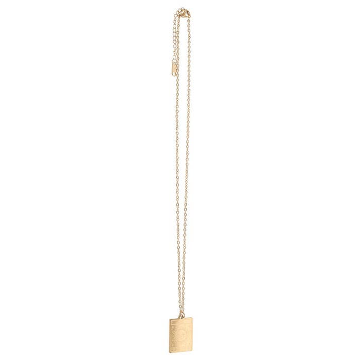 This gold-toned pendant necklace features The Sun tarot card design, symbolising joy, success, and positivity. Presented on a beautifully illustrated greeting card, it makes a thoughtful gift for tarot lovers and celebrating life’s precious moments. Nickel-free stainless steel. Includes matching envelope. Card left blank inside. Designed by Something Different Wholesale and part of the Vintage Tarot collection of mystical gifts and home decor.