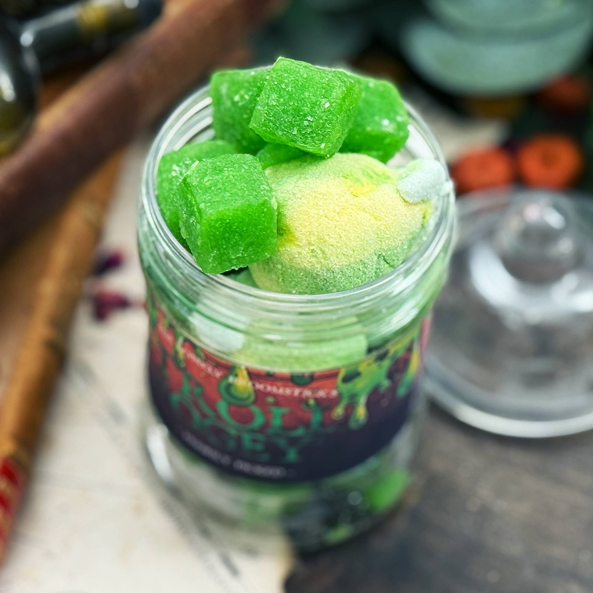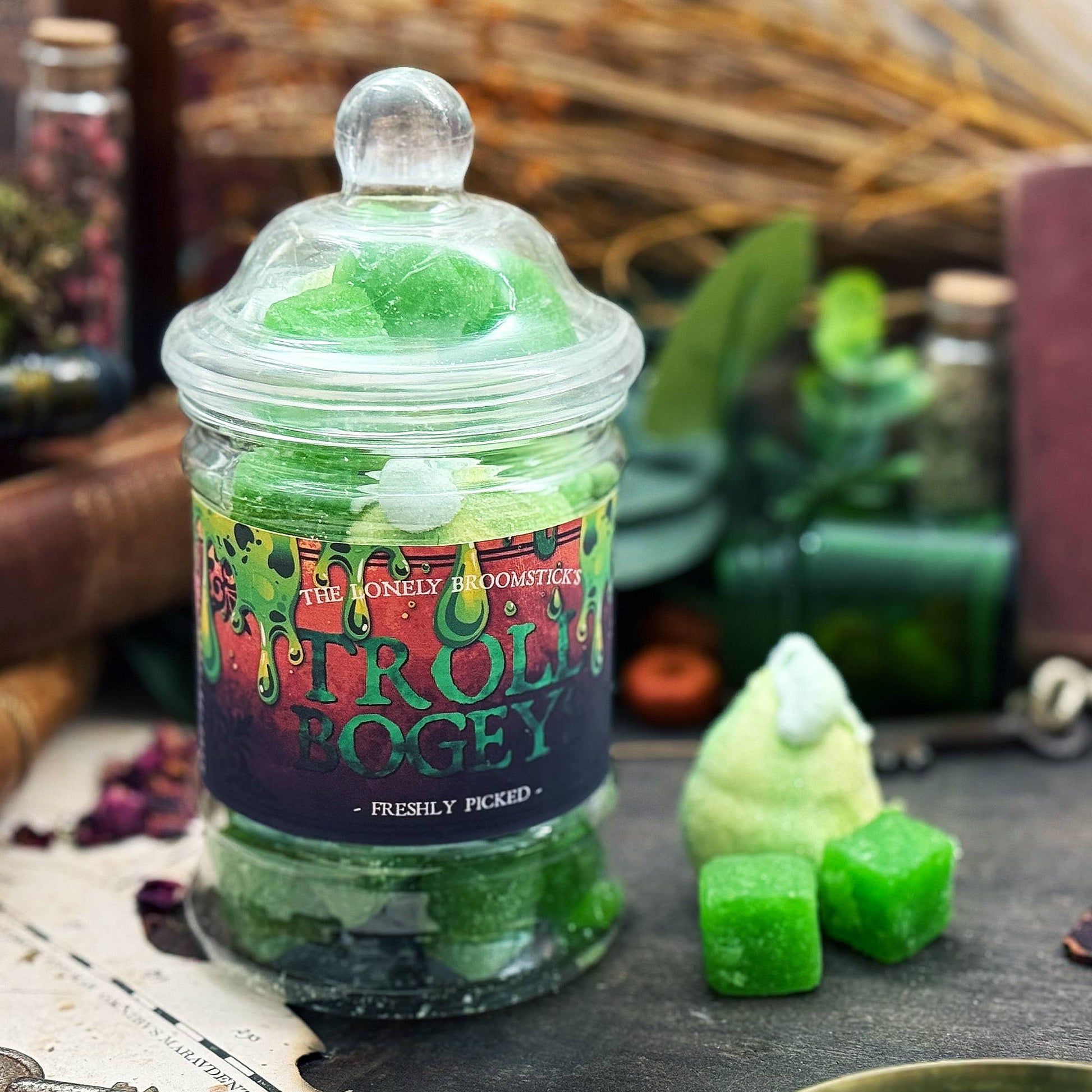 Disgustingly delicious, these Troll Bogeys are freshly picked and ready to be eaten! Each jar contains a perfect pair of crunchy sour apple-flavoured cubes and soft, slimy apple marshmallows. A treat that’s as fun as it is delicious!