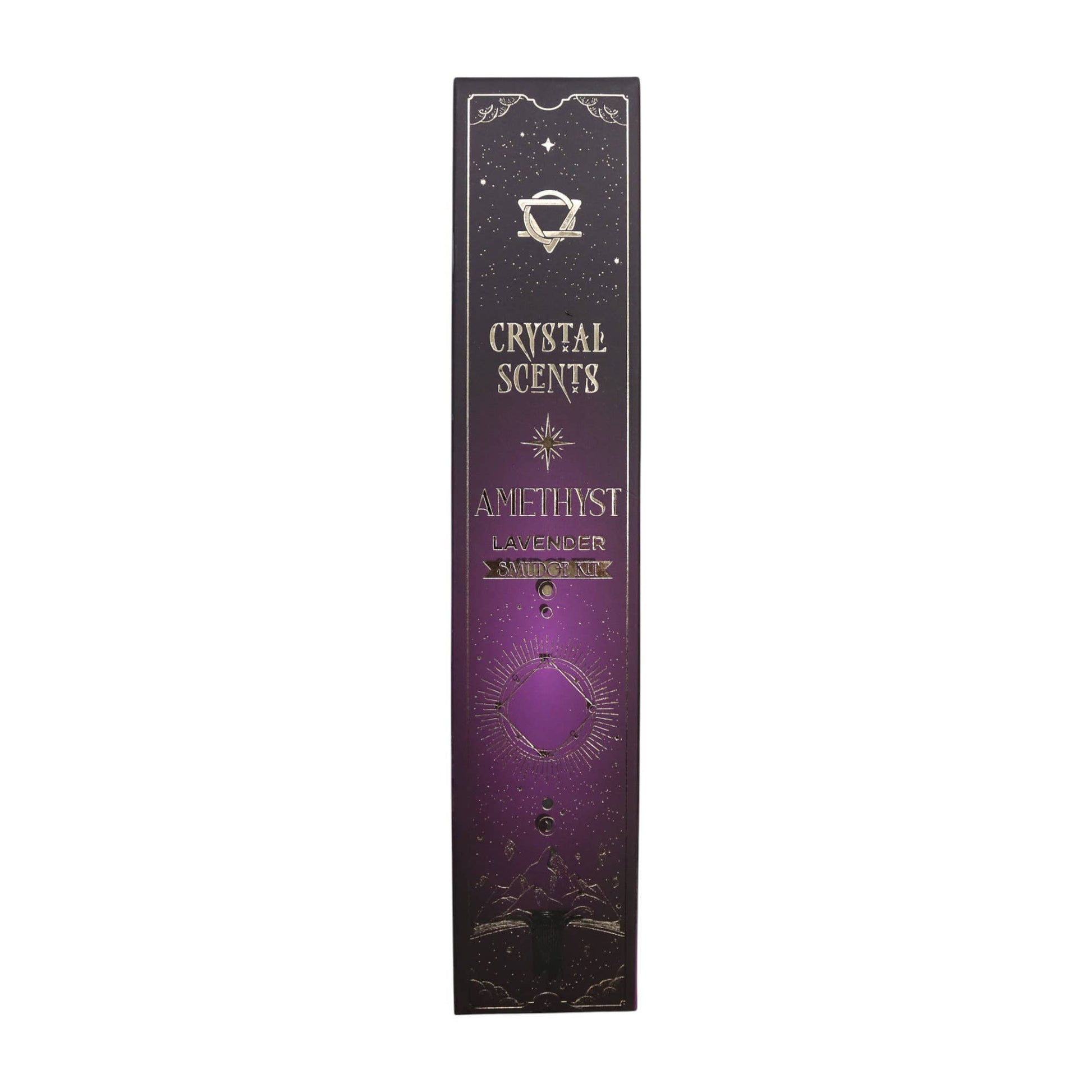 Each pack contains 10 handcrafted smudge sticks, paired with a small crystal chosen to match the design — amethyst, rose quartz, aventurine, tiger eye, pyrite, labradorite, red agate, lapis, jade or tourmaline. Shoppers receive both a scented experience and a crystal they can keep, which adds clear value and encourages gifting.