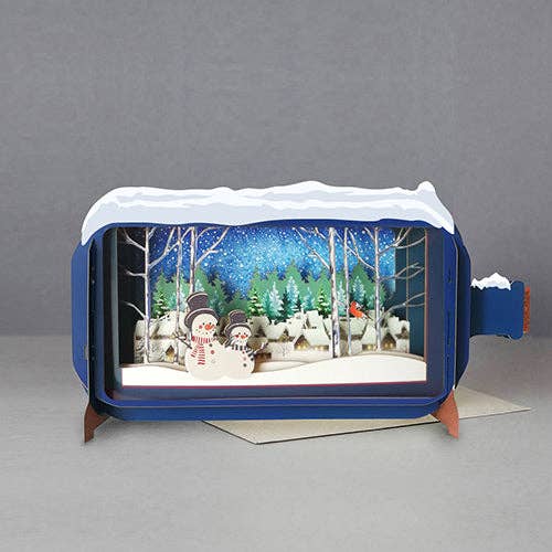 These dimensional cards, hand-made with a patent pending process. Offer simple, diverse message for a variety occasions. and blank on the inside. our new designs play with six-layered, laser and die cut paper technique. Flat pack, pop up image and information sheet on the front packaging.Image: Snowman, ChristmasMessage : Blank